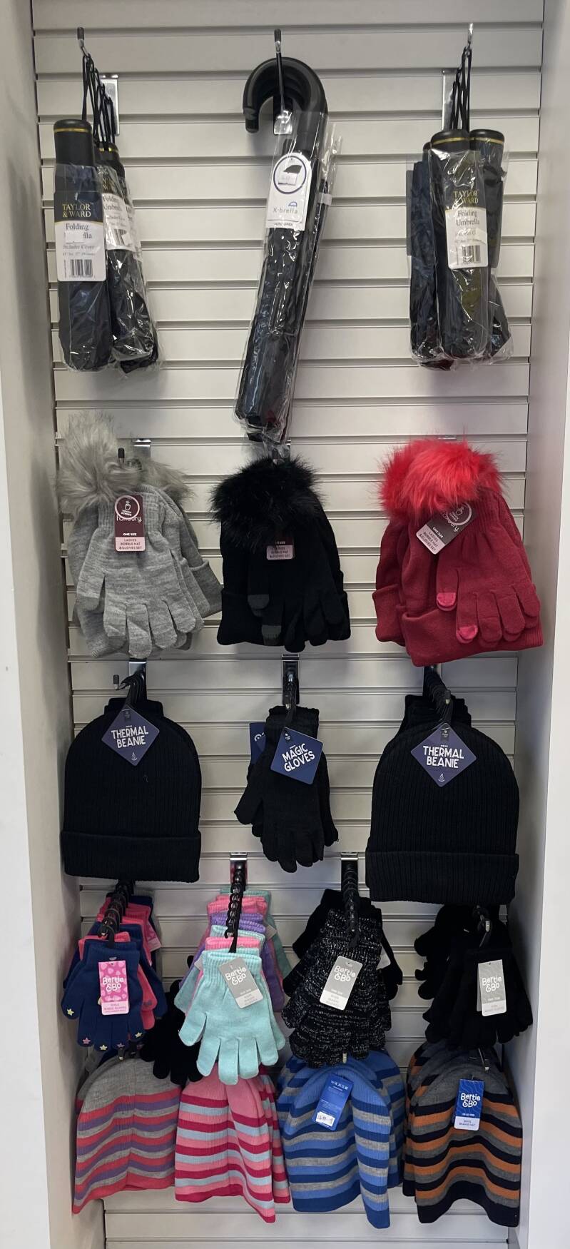 Stay warm and dry in the lovely Aberdeen weather with our selection of hats, gloves and umbrellas.